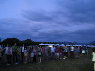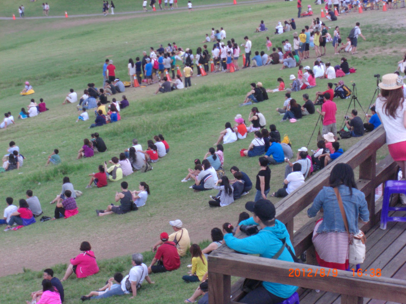 意志力不夠堅定。看著外面毛毛雨,原本出門購買好雨衣的我們,卻又不知怎麼的又縮回民宿。一直拖到四點多才出發。這時候一路上已經有其它遊客前往,而我們騎車比較慢,所已到場時已經看到長長的排隊人潮。